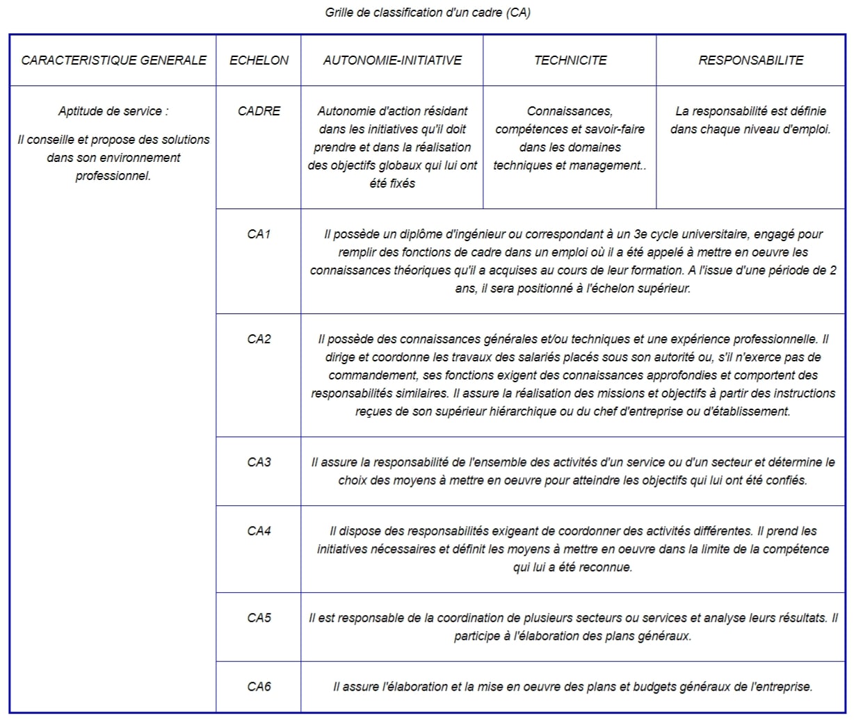 La classification qui est attribuée au salarié dépend de ses compétences, de son ancienneté dans la branche qui lui confère une expérience, et surtout de ses fonctions réelles. En effet, ce sont ces dernières qui sont l’élément clé de sa classification et qui comptent réellement. La grille des classifications comporte des niveaux, puis des échelons à chacun d’entre eux qui cumulent des critères. La lecture n’étant pas si aisée, l’interprétation a de fortes chances d’être différente au fil du temps, l’enjeu étant au final la rémunération. Afin d’y voir plus clair, un tableau des emplois repères existe bien plus concret.